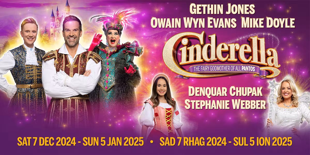 “Oh yes it is” a Christmas tradition and Panto’s don’t come much more classic than Cinderella at the historic New Theatre. Cardiffâs magical family panto stars presenter Gethin Jones as Prince Charming, broadcaster Owain Wyn Evans as Dandini, much-loved New Theatre Cardiff regular Mike Doyle as the Baroness, and returning favourites Denquar Chupak as Cinderella and Stephanie Webber as the Fairy Godmother.