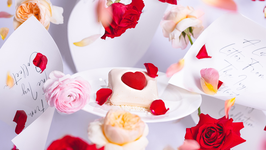 Dathlwch Ddydd Sant Ffolant gyda llyfryn, diodlen goctels a phwdin arbennig