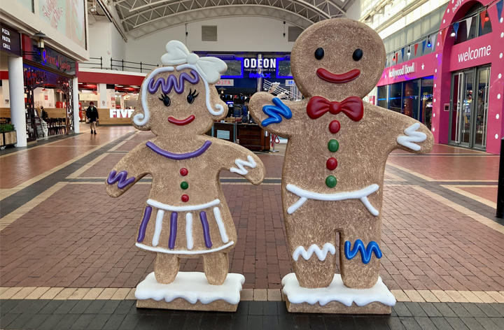 Os ewch chi lawr i Fae Caerdydd Nos Galan hon, cewch eich synnu gan yr amrywiaeth o gymeriadau bara sinsir ar hyd y lle – gan fod y Bae wedi cael ei gymryd drosodd gan gerfluniau sinsir mawr (ond cyfeillgar). Dilynwch y llwybr o amgylch y Bae, a chymerwch olwg ar y Tŷ Bara Sinsir yng Nghanolfan Red Dragon. Tra’ch bod chi yno, beth am wneud diwrnod ohoni gyda gêm o fowlio deg yn Hollywood Bowl, gwylio ffilm gyda’ch gilydd yn sinema Odeon IMAX a chael hoe yn Five Guys sy’n gweini byrgyrs eiconig o America gan ddefnyddio cynnyrch ffres.
